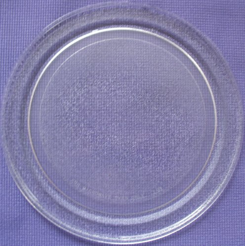 Plate diameter is 14.125 inches (14 1/8") (bottom of plate has a raised edge outside the outer roller ring circle) (Roller ring circle on the lower surface of the plate is 10.75 inches (10 ¾") outer diameter and 9.625 inches (9 5/8") inner diameter) "(FOR MICROWAVE OVEN ONLY) (Y 136)"